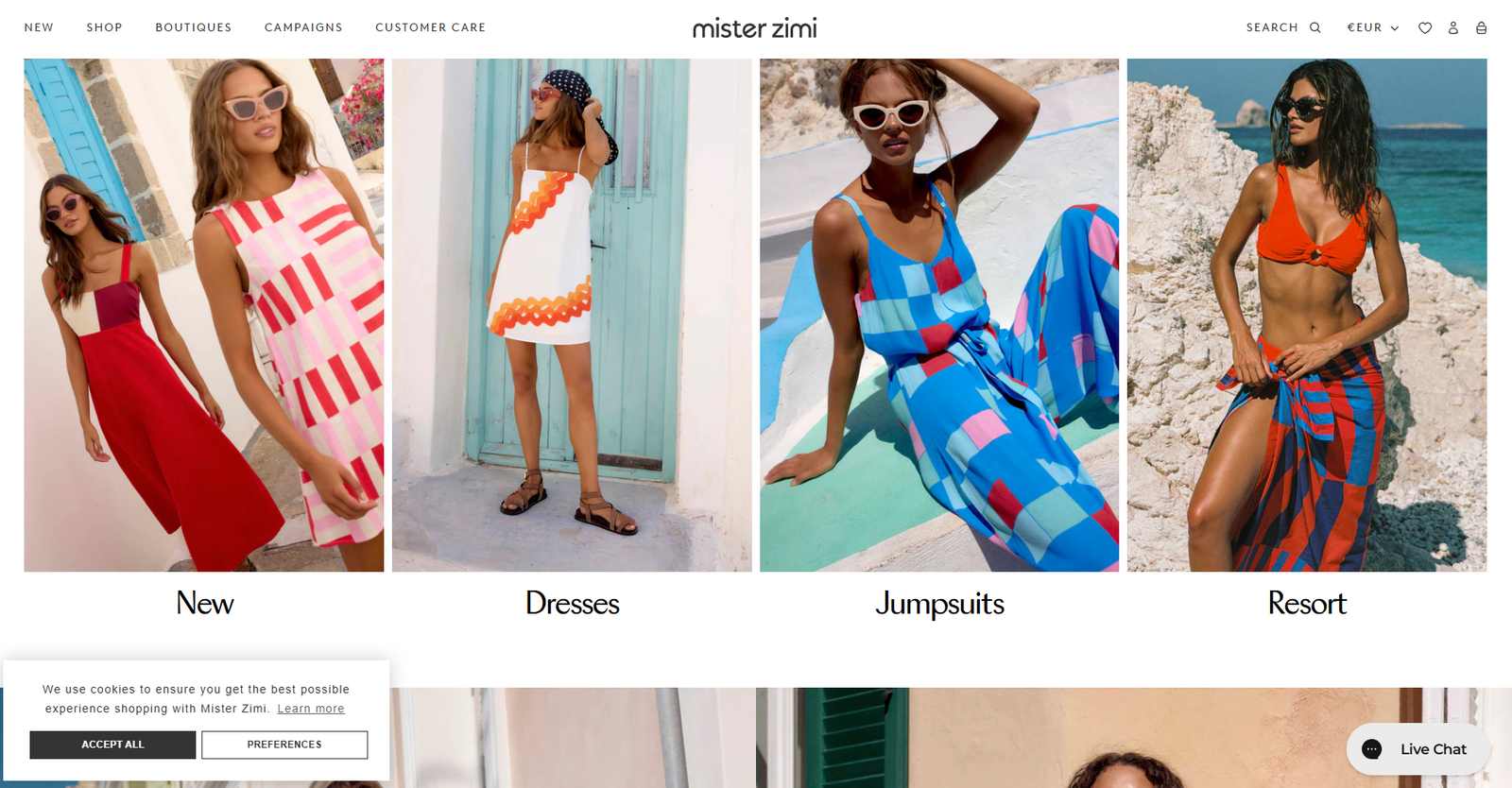Mister Zimi is a lifestyle brand known for its vibrant 70s-inspired prints, resort wear, dresses, jumpsuits, swimwear, and accessories. The challenge was to convey their “everyday holiday” brand identity clearly across their digital channels and target customers who value timeless, colorful, and relaxed fashion. They also wanted to emphasize their commitment to quality, sustainability, and customer experience.